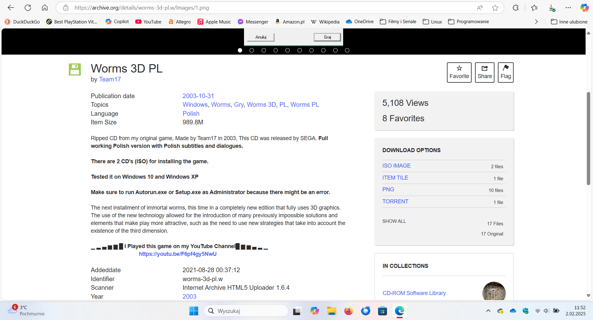 Rozumiem dzięki za odpowiedźDark Archon pisze: ↑05 lut 2025, 17:28 Wrzucają i nikt tego nie sprawdza. archive.org jest wykorzystywane głównie do archiwizacji, ale od jakiegoś czasu jest to też po prostu zbiorowisko pirackich kopii gier. Chyba wszyscy przymykają na to trochę oko, póki nikt nie robi o to afery.